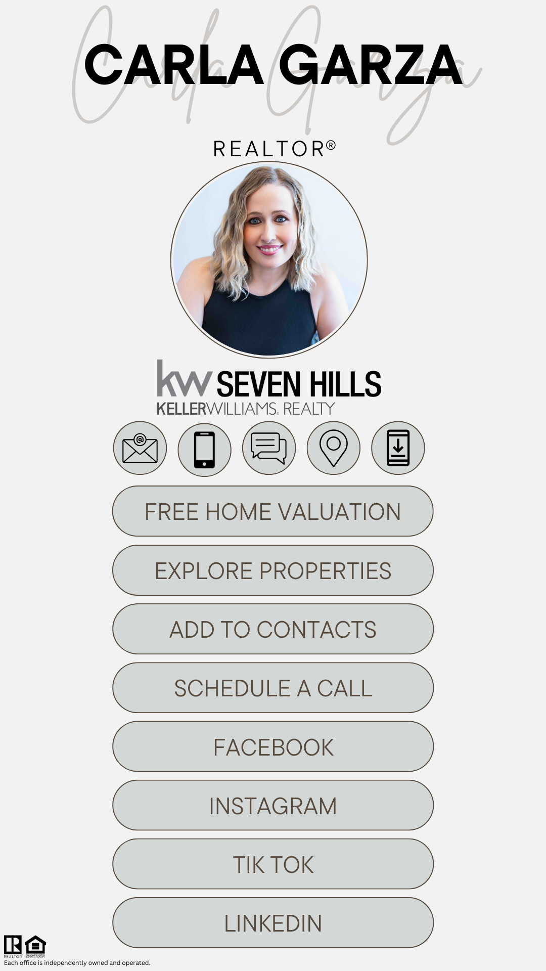 Email Call Text Directions Download My App Carla Garza Free Home Valuation Explore Properties Add To Contacts Schedule A Call Facebook Instagram TikTok Linked In Keller Williams Seven Hills